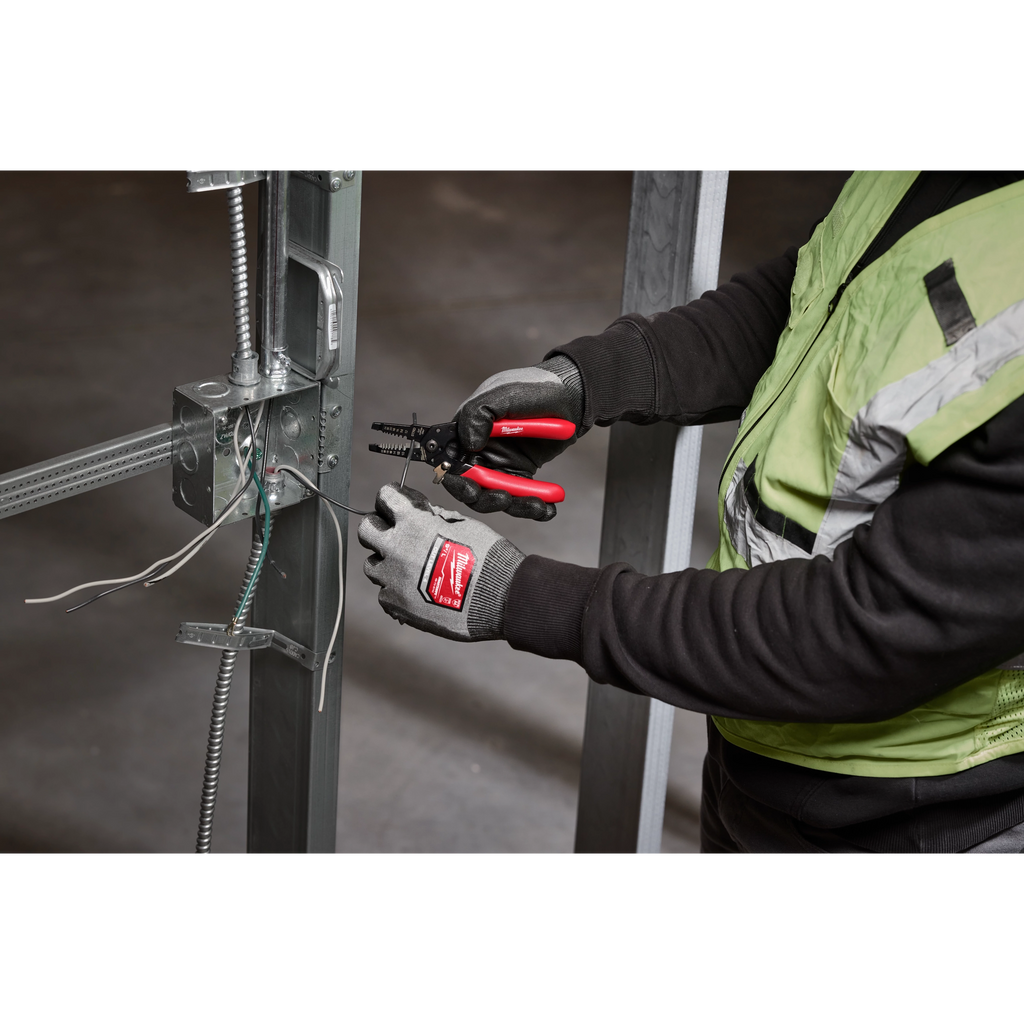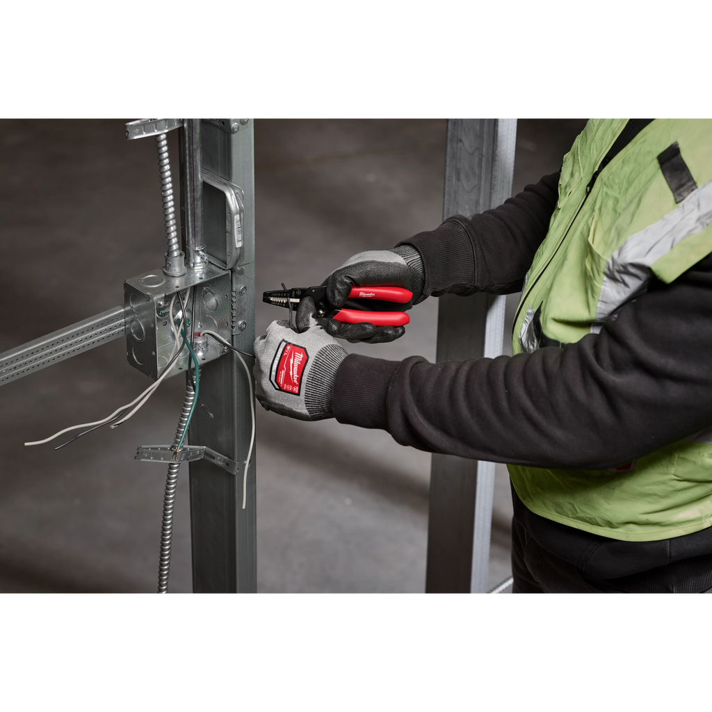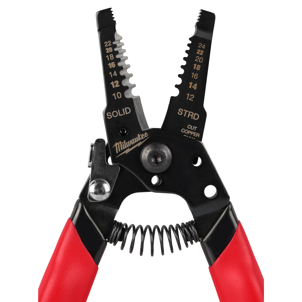 Le détacheur et coupe‑fil à poignée trempée compacte MILWAUKEE® enlève proprement et avec précision les fils solides 10‑22 AWG et les fils multibrins 12‑24 AWG. La lame de coupe à forme incurvée permet de trancher nettement les fils de cuivre. L’outil est à ressort pour une ouverture facile et se verrouille pour un rangement pratique dans la poche, la trousse à outils ou le sac. Ce détacheur compact possède un petit bec de pince pour saisir les fils dans les espaces restreints et des fentes pour plier et enrouler les fils. Tous les détacheurs de fil MILWAUKEE® sont garantis à vie limitée.