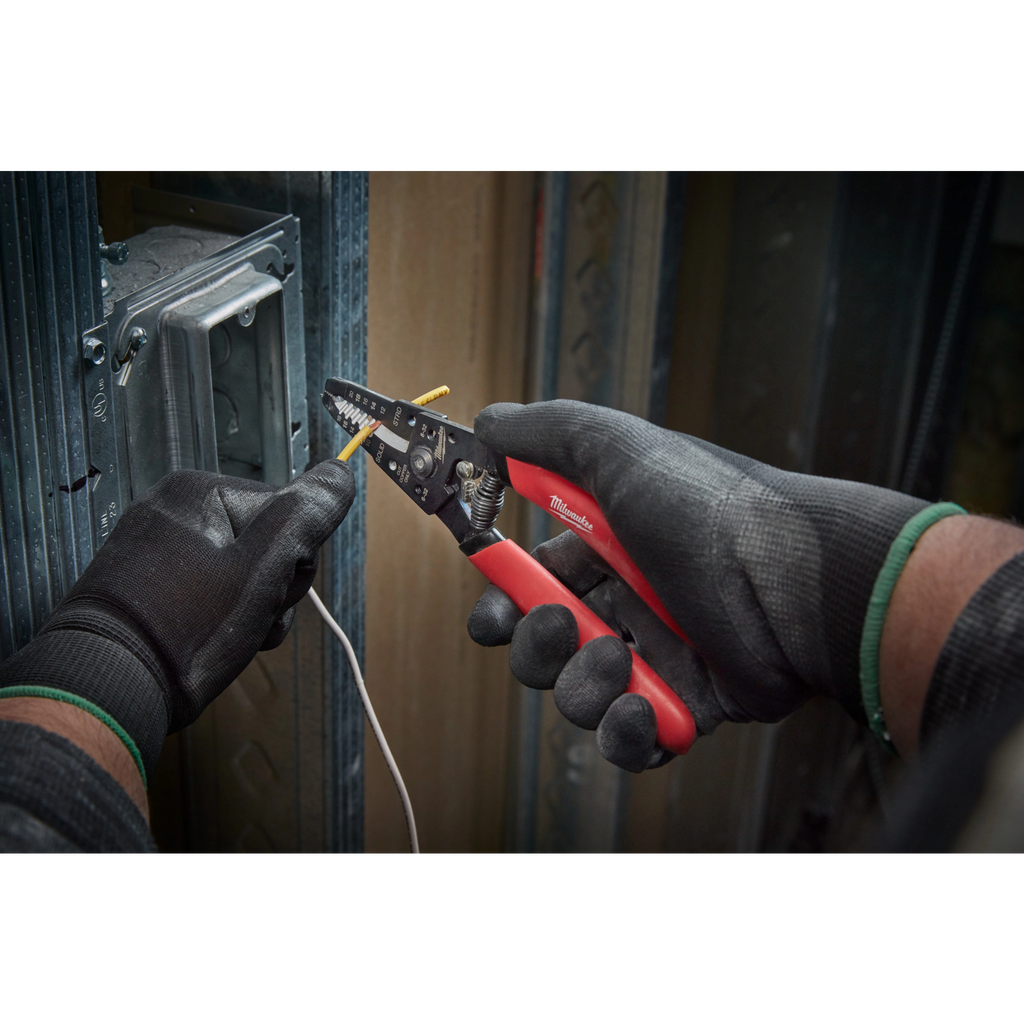 Le Milwaukee 48-22-6109 Wire Stripper/Cutter pour fil plein et toronné possède un mécanisme swing‑lock pour une utilisation rapide à une main et ne s’ouvre pas lorsqu’il est rangé dans une pochette ou un sac à dos. Ces pinces sont dotées d’une lame courbée qui permet des coupes nettes sur des fils de plus gros diamètre et peuvent couper des boulons #6 et #8. La forme ergonomique de la poignée et la conception légère offrent une polyvalence maximale et un dénudage de fil fluide. Le Milwaukee 48-22-6109 est idéal pour les chantiers les plus exigeants. Milwaukee soutient son produit et offre une garantie à vie limitée sur toutes les pinces à dénuder. Le Milwaukee 48-22-6109 comprend (1) 48-22-6109 Wire Stripper.