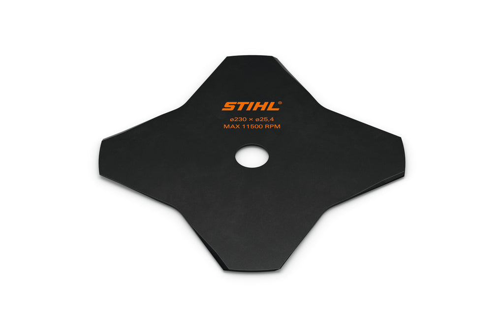 La lame GrassCut de STIHL, dotée de quatre couteaux, a un diamètre de 230 mm, est fabriquée en acier de haute qualité et est réversible si nécessaire, ce qui augmente sa durée de vie et améliore l'efficacité de travail.