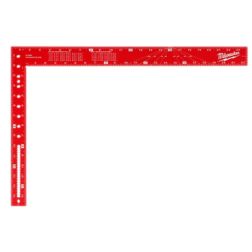 Our 16" x 24" Aluminum Framing Square is stronger than steel and is the most versatile framing square. It has a 50% thicker frame to provide you with more durability than competitive steel squares. Scribe notches from 1" - 13" allow you to easily and accurately rip lumber. High visibility laser etched markings allow you to easily read measurements on the carpenter square.