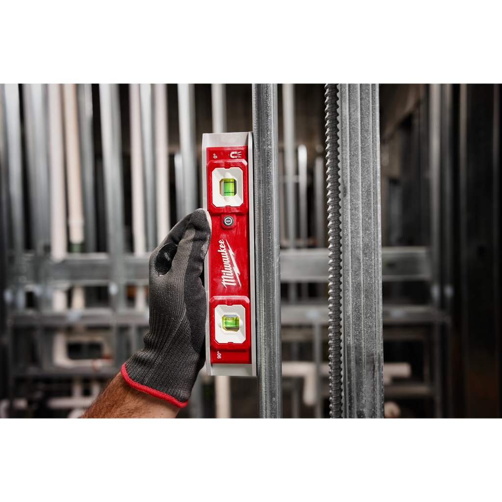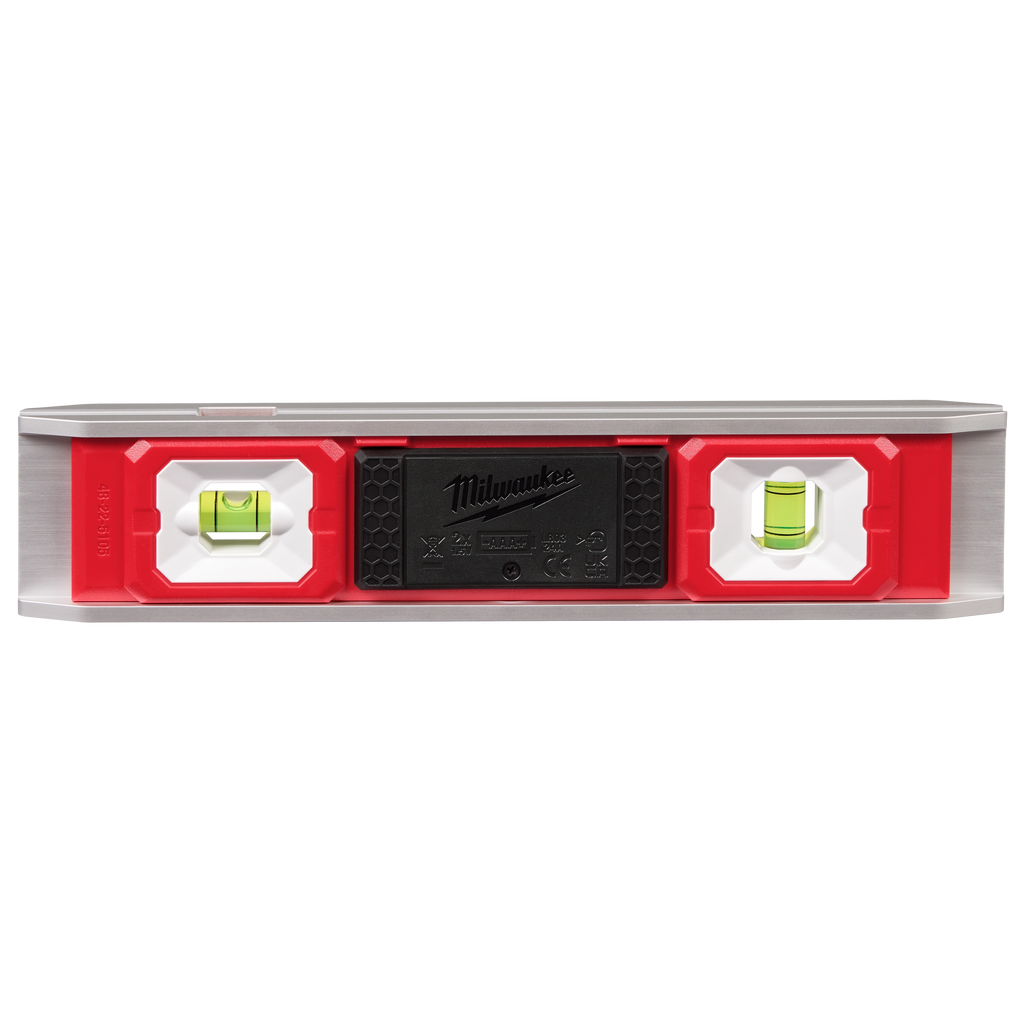Our 9” Torpedo Level with Lighted Vials provides better vial visibility in poorly lit environments. Each vial is lit with bright dual LEDs and the high-contrast surrounds deliver clear readings. The level also has a durable aluminum frame protecting it from drops and harsh jobsite conditions. The 3 rare earth magnets on the frame make working with conduit and other metals easier; and the rubber wall grip grabs onto the surface when leveling trim, shelving, windows, and outlets. The level is powered with (2) AAA batteries (included) and the vials have an automatic shut off after 3 minutes to preserve battery life. The 9” Torpedo Level with Lighted Vials is backed by a limited lifetime warranty on the frame and vials and a 1-year limited warranty on the electronics.