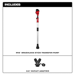 Our M18™ Brushless Stick Transfer Pump delivers superior filtration for the fastest handheld pumping in trenches, vaults, utility pole holes, and more. Powered by our M18™ battery platform and brushless motor technology, this water pump transfers up to 25 gallons per minute and up to 1000 gallons on (1) M18™ REDLITHIUM™ FORGE™ HD12.0 battery. Equipped with HYDROPASS™ filter technology, its 360° filter maximizes flow in heavy debris, minimizing downtime caused by clogging. With a 48” submersible reach, this stick transfer pump provides the extension needed to reach water at the bottom of trenches and difficult-to-reach areas. Compatible with a 1-1/4” discharge hose or up to two ¾” standard garden hoses using the included Y-adapter, transfer water farther to the ideal deposit location with a 17ft maximum head height. Our M18™ Brushless Stick Transfer Pump joins the M18™ System of over 275+ solutions and is compatible with all M18™ REDLITHIUM batteries.